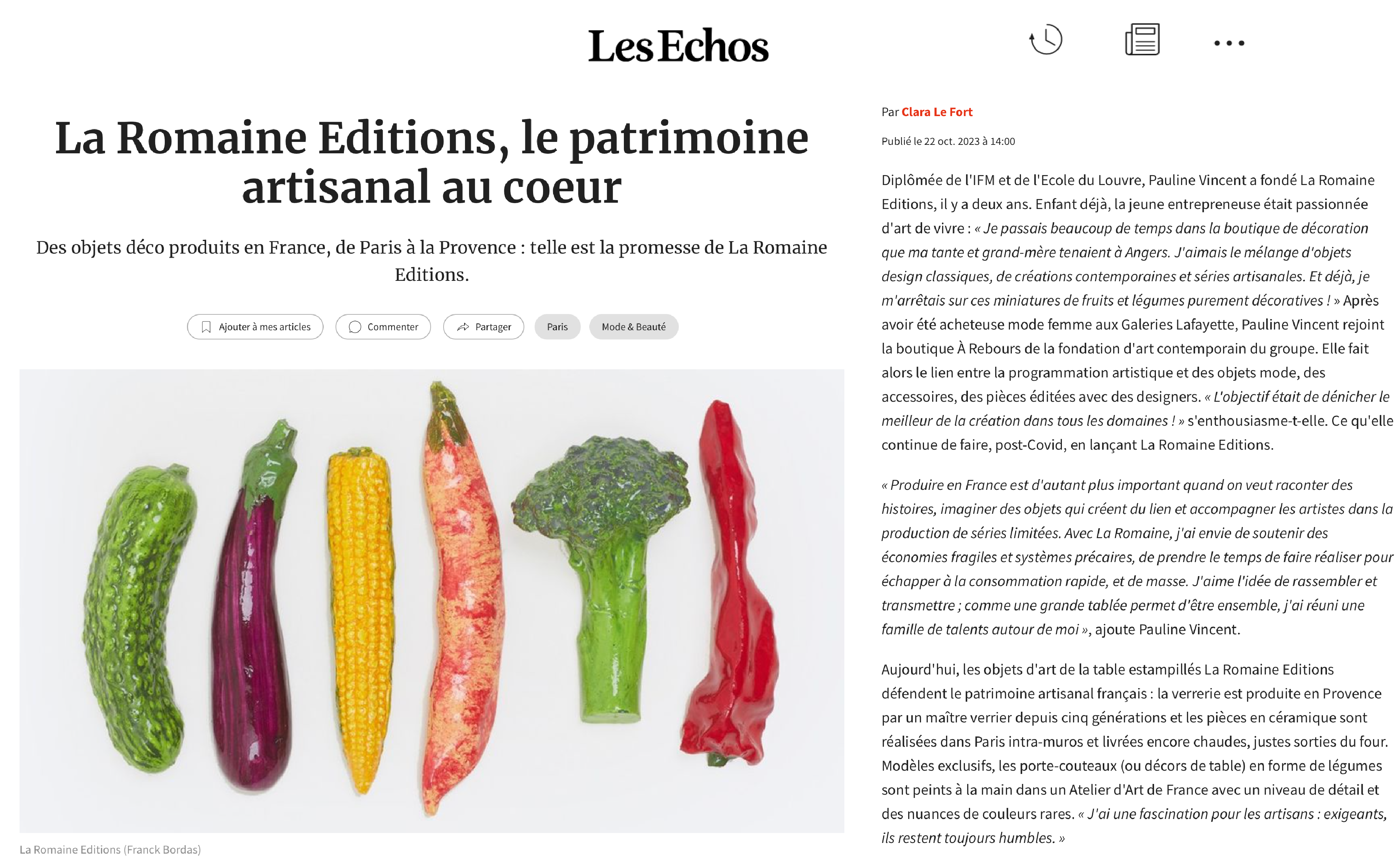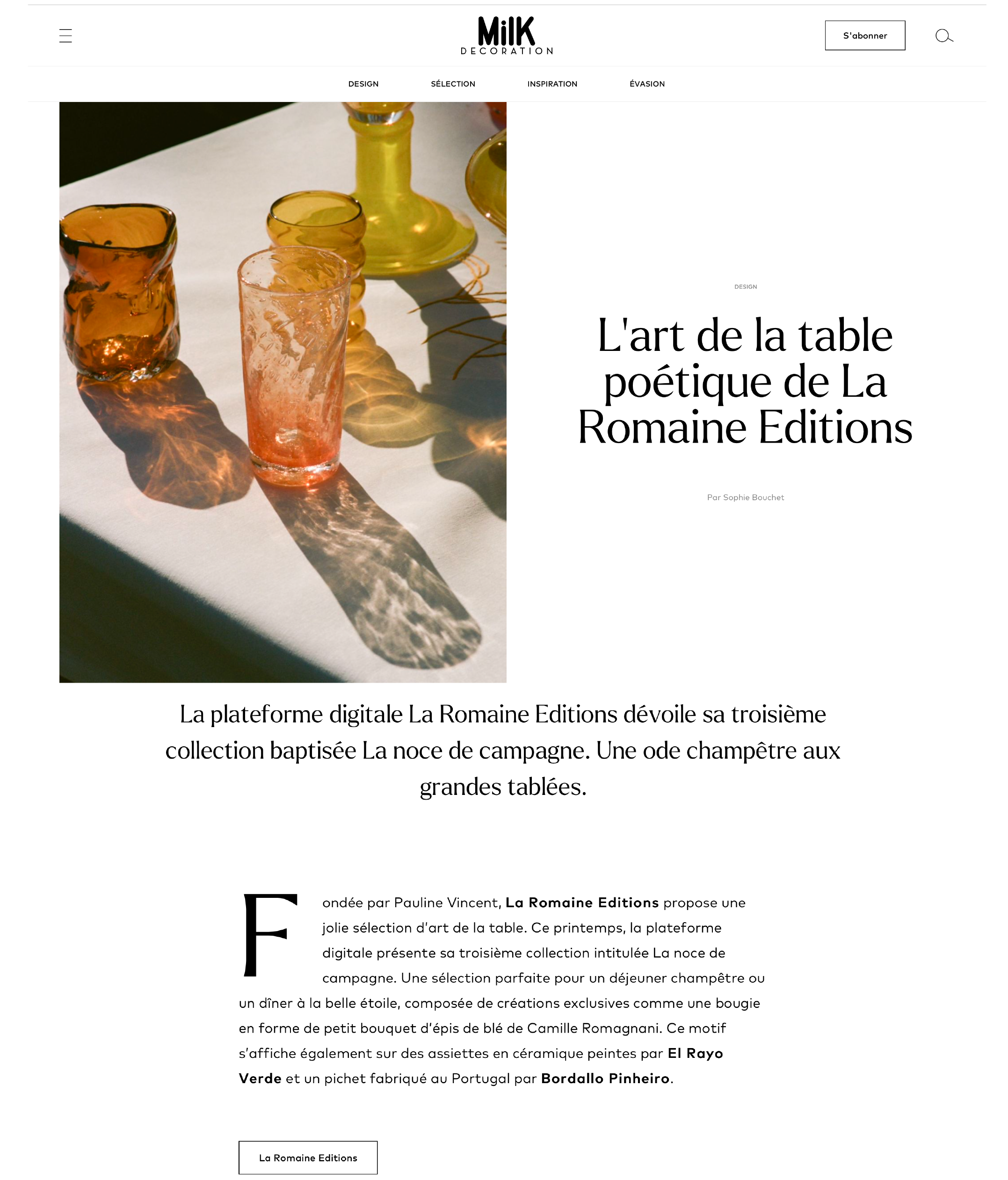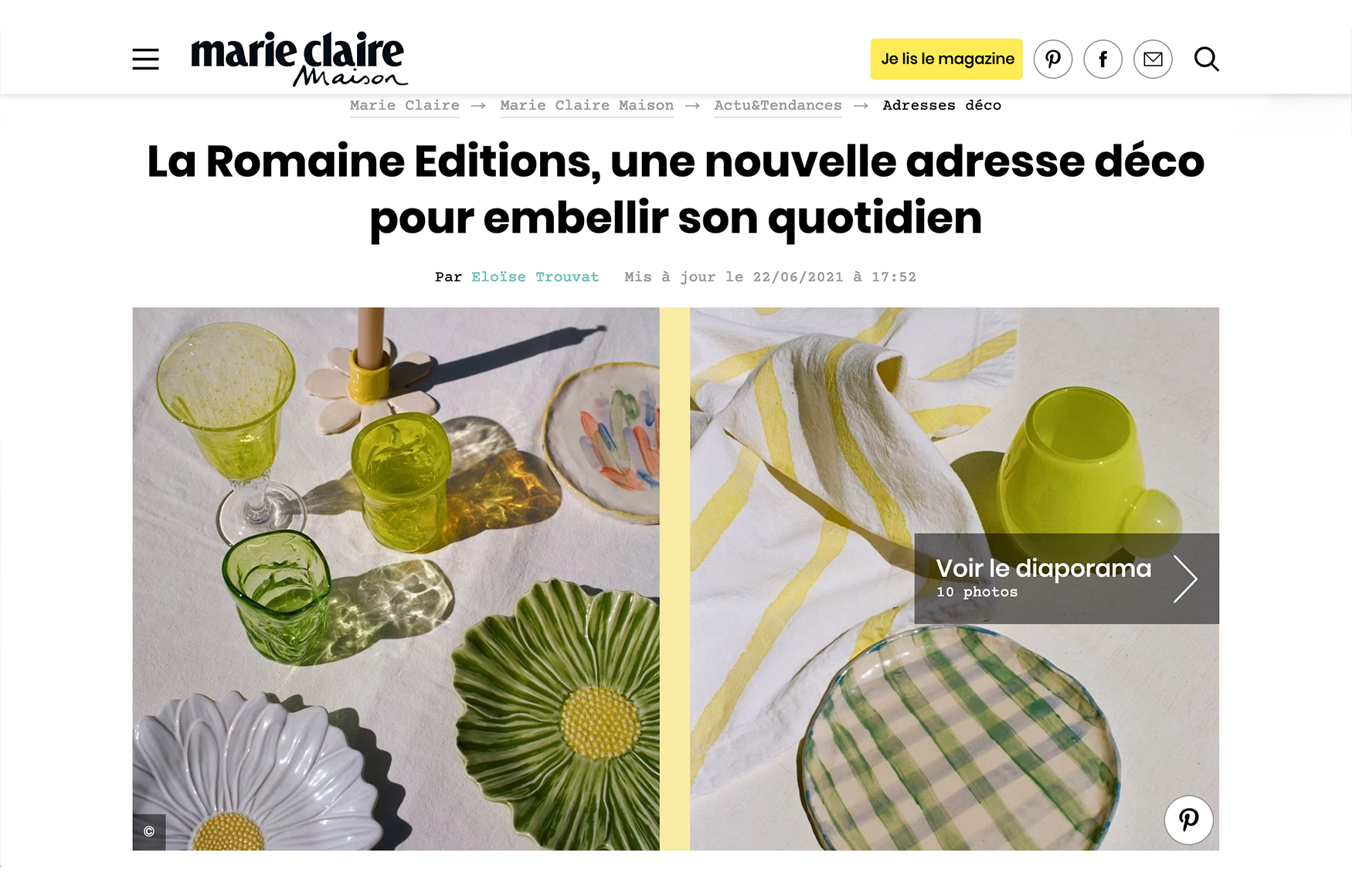 La Romaine Editions est un projet, celui de montrer la beauté et la poésie dans les objets du quotidien. Ceux qui sont là aujourd’hui, et qui seront les écrins des souvenirs de demain. C’est une autre famille, d’amis, d’artisans, d’artistes, de designers, qui réinvente les objets de la maison et qui propose des pièces intemporelles mais aussi deux collections par an dont les thématiques changent selon l'air du temps.