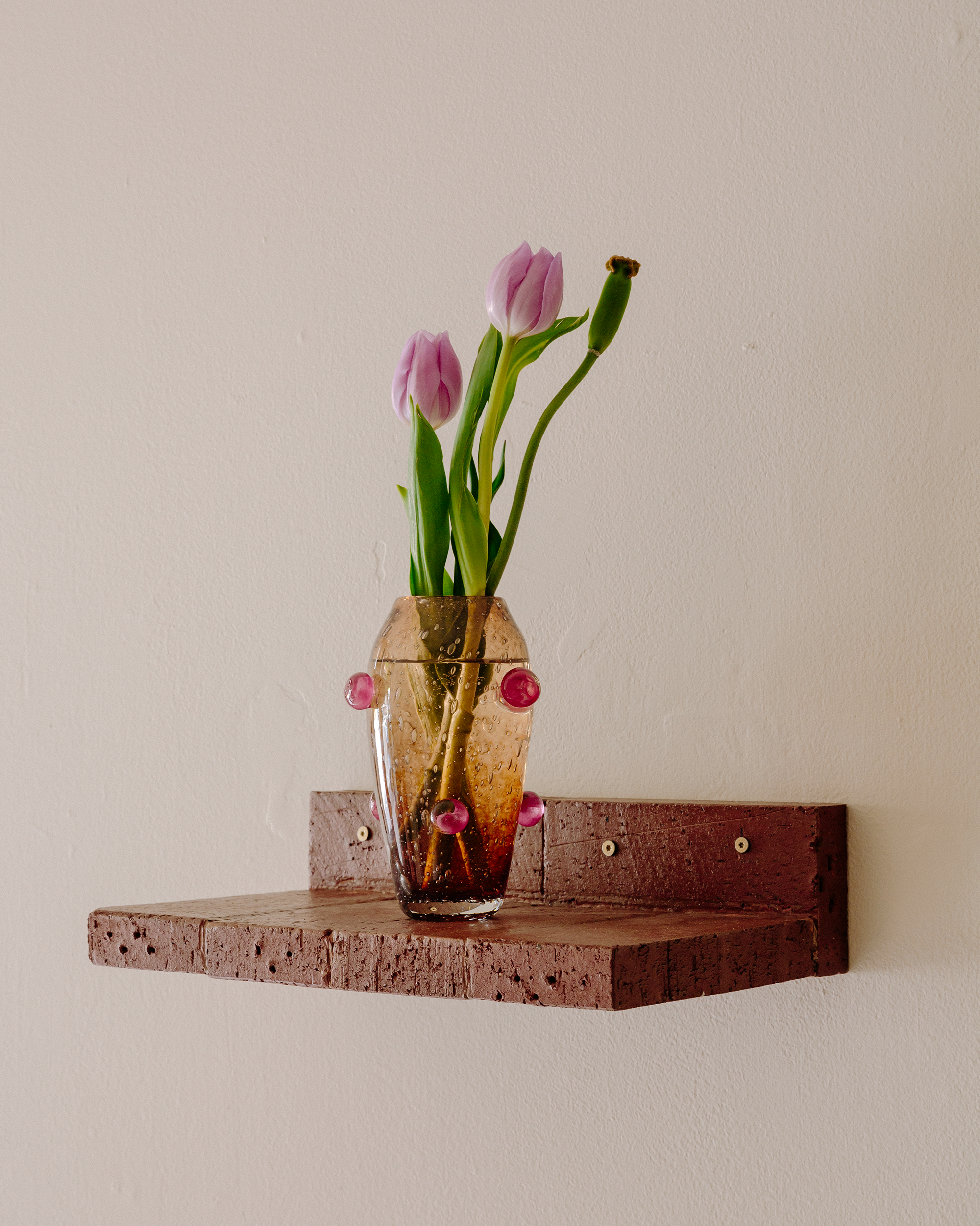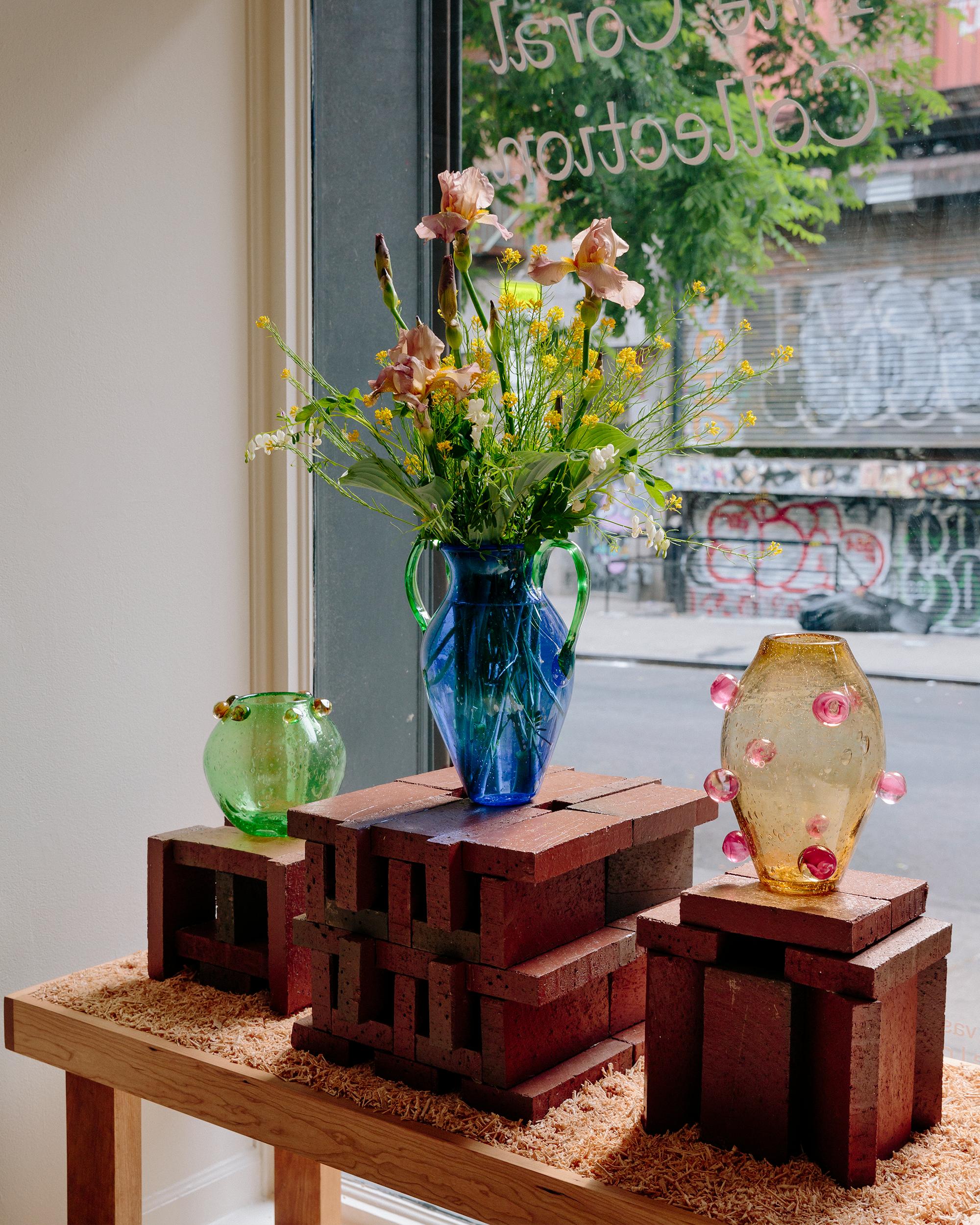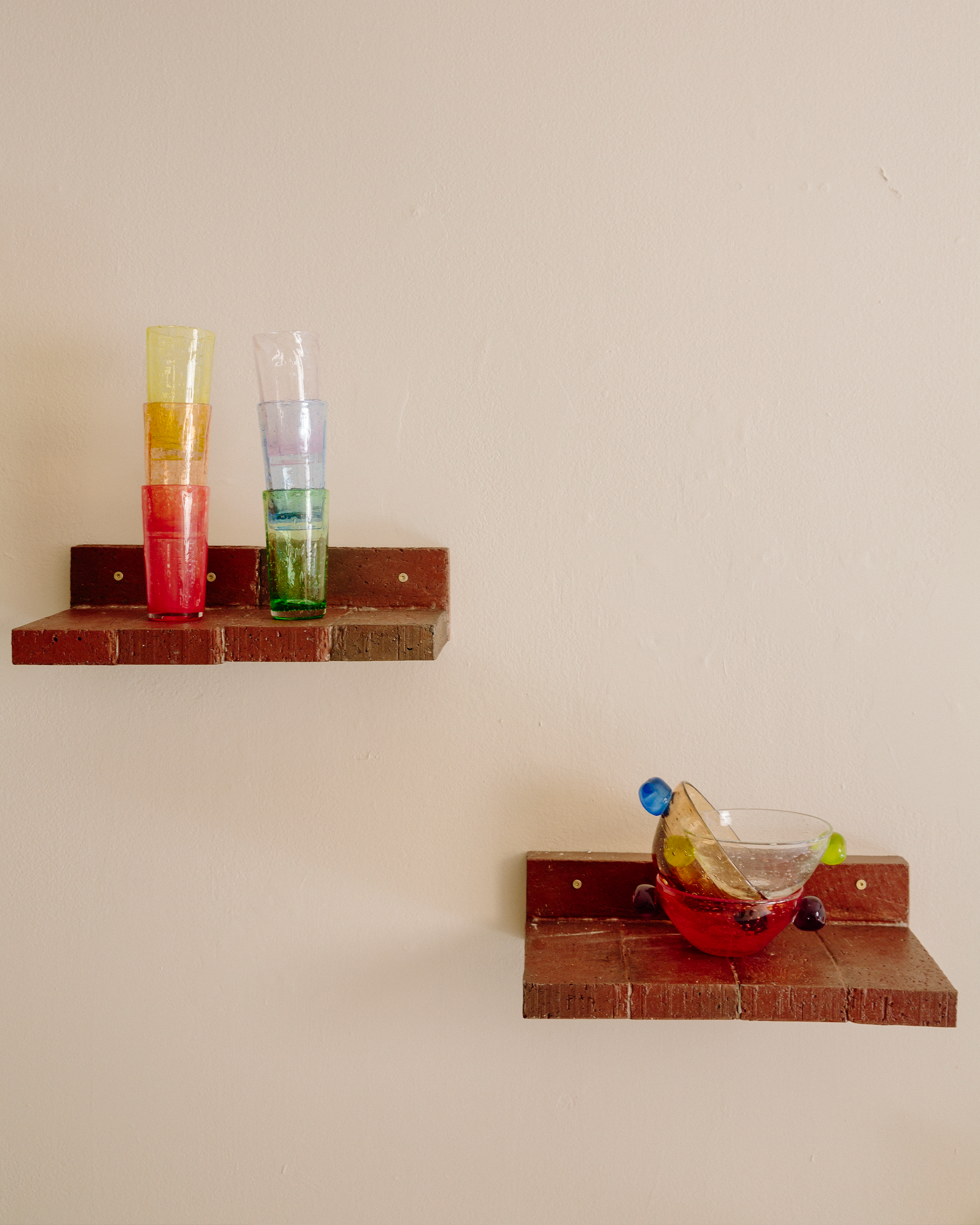 Une collection créée en collaboration avec l'artiste Sophie Lou Jacobsen, basée à New-York. Imprégnée de l'esprit de la mer, des bulles d'air qui se forment à la surface de l'eau aux teintes saturées qui colorent les profondeurs des fonds marins. Chaque récipient, imparfaitement unique, a été soufflé à la main dans un four patrimonial à Biot, en France.